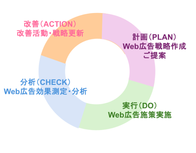 Web広告は、計画(Plan)、実行(Do)、分析(Check)、改善(Action)を続けることで大きな成果につながります。